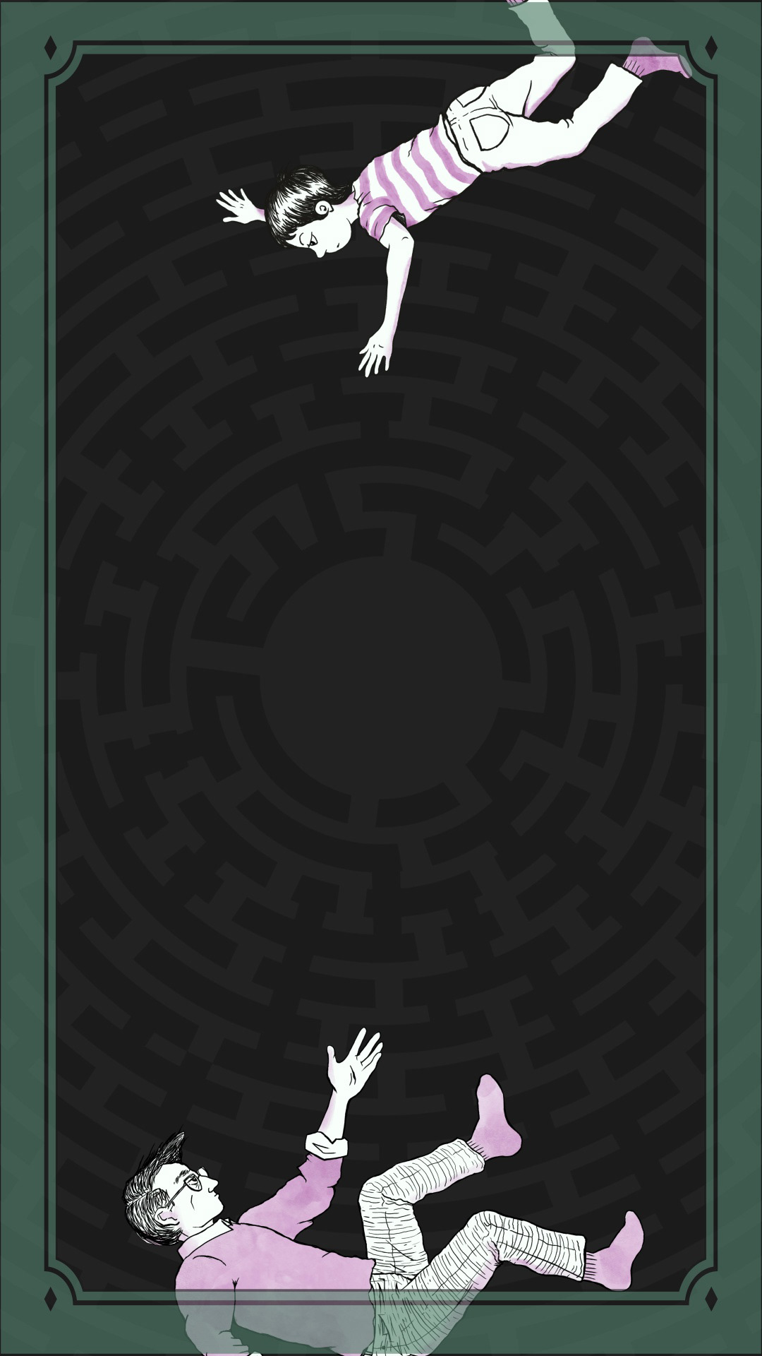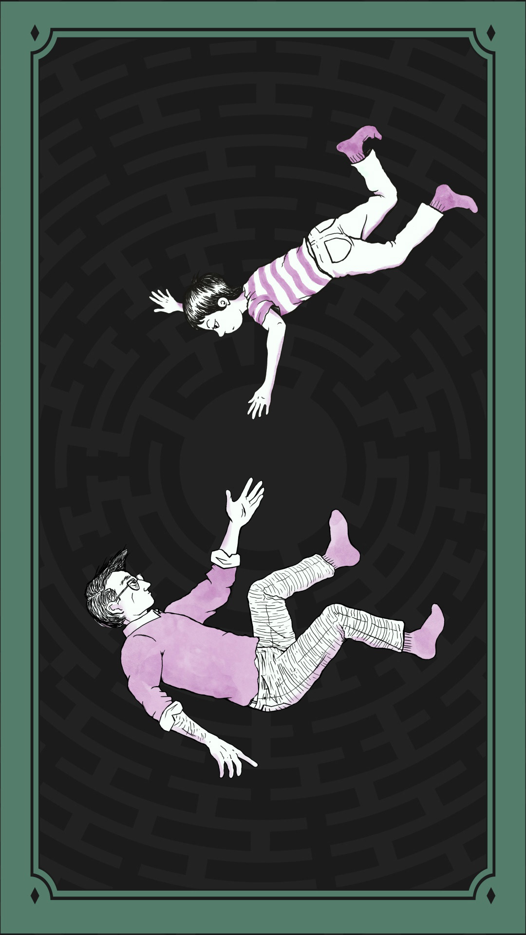 A reimagined cover of Alison Bechdel’s critically acclaimed graphic novel Fun Home. Inspired by the Icarus myth the cover depicts Alison and her father, Bruce, falling together with emotionally blank stares, symbolising their close yet distant relationship despite their many similarities.